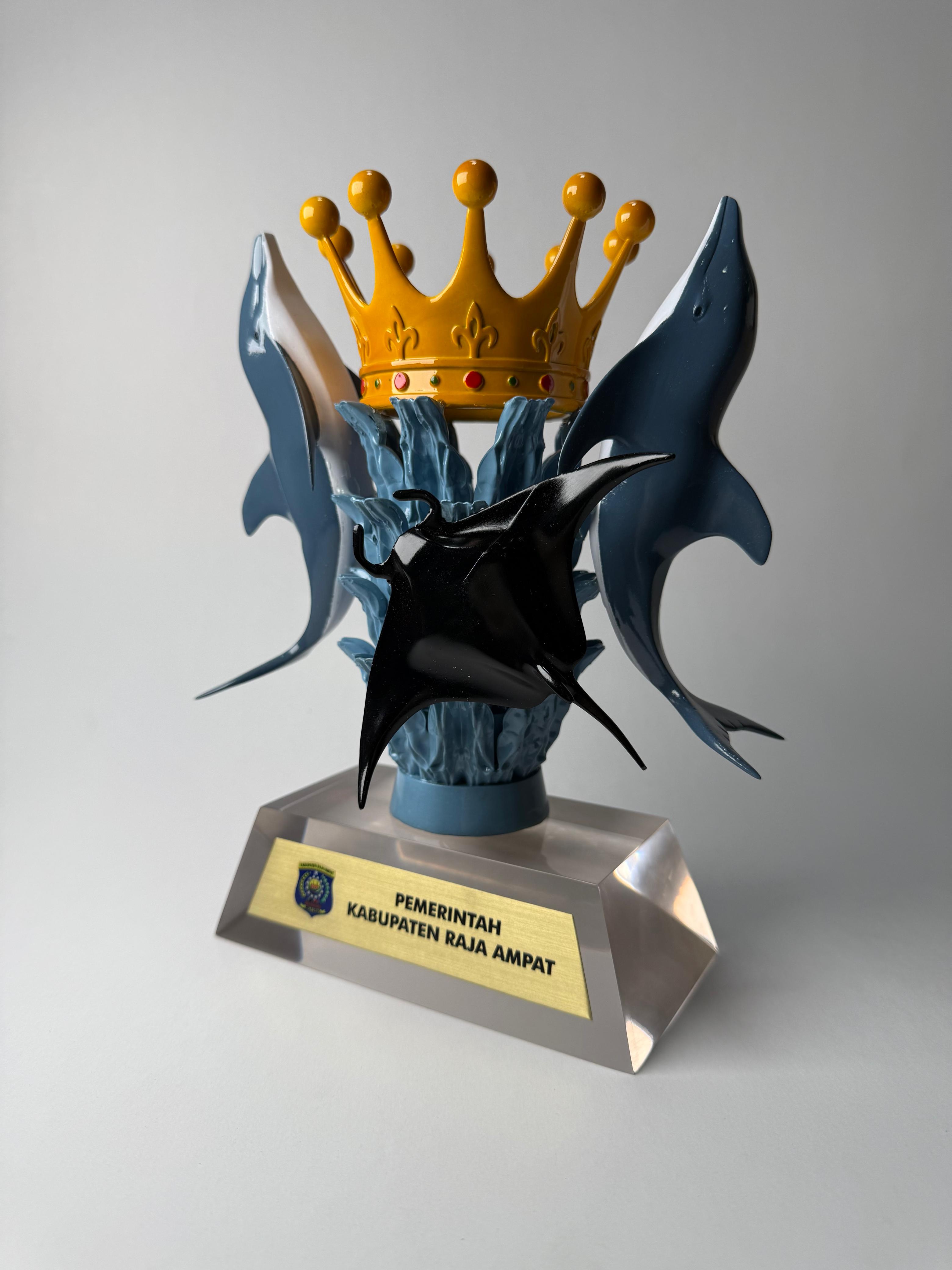 "Exclusive 3D Trophy – Raja Ampat Monument Edition" Created specially for the Regional Government of Papua, this 3D trophy is a tribute to the iconic monument of Raja Ampat — a symbol of Papua’s natural beauty and cultural pride. Designed with intricate details and artistic precision, the monument comes to life in a stunning three-dimensional form. Crafted using high-quality, durable materials, this trophy not only serves as a token of appreciation but also as a lasting piece of art. We use premium resin, metal accents, and fine finishing to ensure each piece meets the highest standards of excellence and elegance. Whether it's for recognition, celebration, or ceremonial purposes, this trophy captures the spirit of Raja Ampat and the rich heritage of Papua in a memorable way.